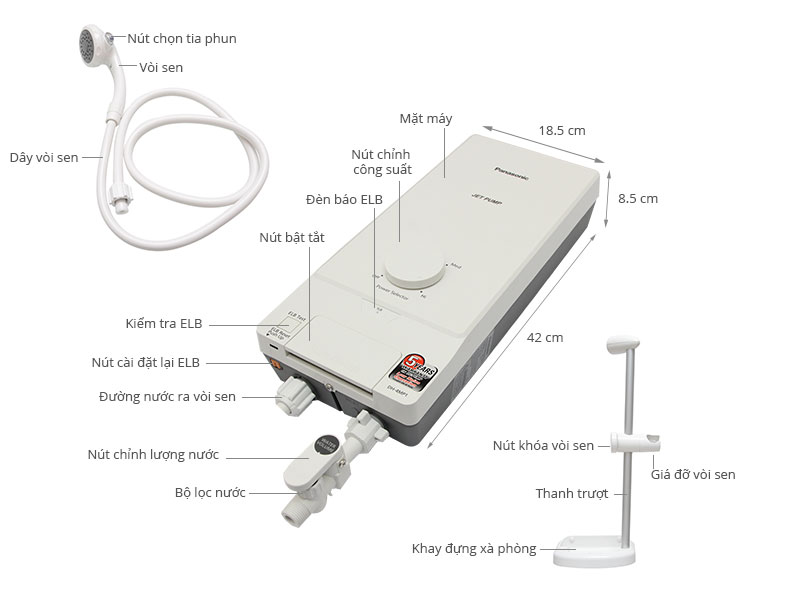 - ĐỐI VỚI SẢN PHẨM MÁY LẠNH, MÁY TẮM NÓNG - GIÁ BÁN CHỈ LÀ GIÁ MÁY, CHƯA BAO GỒM CÔNG LẮP ĐẶT & VẬT TƯ. ️QUÝ KHÁCH HÀNG CẦN TƯ VẤN & HỖ TRỢ NHANH CÓ THỂ LH SHOP NHÉ. Sản phẩm đạt tiêu chuẩn tương thích điện từ EMC Sản phẩm được sản xuất theo tiêu chuẩn tương thích điện từ EMC có nghĩa là sự tương thích điện từ của sản phẩm không gây ảnh hưởng và bị ảnh hưởng bởi các sản phẩm điện tử khác, từ đó giúp quá trình hoạt động của máy sẽ không gây ra sự rò nhiễm điện với các vật dụng, đồ dùng trong nhà. Vì vậy bạn có thể yên tâm khi sử dụng sản phẩm. Tiết kiệm điện năng Máy Nước Nóng Panasonic DH-4MP1VW (4500W) hoạt động theo cơ chế đun nóng trực tiếp, công suất 4.5kW giúp máy hoạt động mạnh mẽ, đun nóng nhanh mà không hao tốn quá nhiều điện năng. Với cơ chế hoạt động này, dù là ở thời điểm nào trong ngày bạn cũng có ngay nước ấm để dùng mà không phải làm nóng nước thủ công như trước đây nữa. Đồng thời máy còn có nút điều chỉnh lưu lượng nước phù hợp, tránh lãng phí nước. Bảo vệ cả gia đình với 9 tính năng an toàn Máy Nước Nóng Trực Tiếp Có Bơm Panasonic 4MP1VW được thiết kế thông minh với 9 tính năng an toàn: Tự động ngắt, cảm biến nhiệt, chống rò rỉ, công tắc dòng chảy, cách ly dòng điện, vật liệu không cháy... bạn có thể yên tâm khi sử dụng một sản phẩm điện được gắn vào môi trường ẩm ướt như phòng tắm. Vấn đề an toàn sức khỏe của gia đình bạn sẽ được bảo đảm. Là thiết bị tiện dụng Được hỗ trợ kèm theo nút điều chỉnh nhiệt độ cao-thấp- trung bình bạn sẽ có được mức độ nóng của nước mà bạn muốn. Điều đó giúp bạn yên tâm hơn khi sử dụng. Vòi sen 3 chế độ với tính năng chống khuẩn bằng ion Ag+ Vòi sen có độ phun mạnh, phun nước đều và ổn định, tính năng Ag+ kháng khuẩn không những giúp làm sạch bụi bẩn trên cơ thể mà còn giúp bạn xua tan mệt mỏi và thư giãn thoải mái sau những giờ học tập, làm việc căng thẳng.