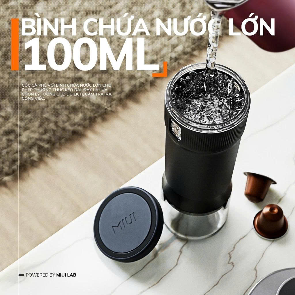 Khả năng tương thích đa chức năng 3 trong 1, có thể chứa cả viên nang nhỏ và lớn, cũng như cà phê xay và các loại cà phê kiểu Ý, cung cấp nhiều lựa chọn pha phù hợp với sở thích của bạn.   Áp suất cao 15bar & công suất hiệu năng cao 100W, làm nóng nhanh, gia nhiệt đồng đều, tạo nồng độ cà phê cao hơn và lớp creamer mịn, hương vị đầy đặn, đảm bảo chất lượng cappuccino, espresso, latte ngon như pha máy  Thân chính làm bằng Tritan, không chứa BPA, khả năng chống va đập vừa cứng vừa nhẹ hơn nhiều so với thủy tinh.  Thiết kế nhỏ gọn và tiện lợi. Chỉ với một nút nhấn, bạn có thể bắt đầu pha cà phê mà không cần thiết lập phức tạp. Thiết kế di động giúp máy pha cà phê nhẹ và dễ mang theo, cho phép bạn thưởng thức cà phê thơm ngon mọi lúc, mọi nơi, dù ở ngoài trời, trên đường hay trong văn phòng.   Có thể tháo rời bộ phận để vệ sinh, làm sạch  Máy pha cà phê MIUI rất lý tưởng cho bạn bè/gia đình yêu cà phê và thường xuyên cắm trại/du lịch,.đáp ứng mọi nhu cầu pha các loại cà phê khác nhau của bạn trong suốt hành trình. Thông số sản phẩm: - Thương hiệu sản phẩm: MIUI CM1001A - Tên sản phẩm: Máy pha cà phê  đa chức năng - Điện áp: DC12V + USB - Công suất: 100W - Chỉ số áp suất: 15Bar - Phạm vi ứng dụng: Viên nén và bột cà phê - Chất liệu: Tritan - Màu sắc sản phẩm: Đen - Dung tích cốc cà phê: 100ml - Kích thước sản phẩm: 215*61*53mm - Trọng lượng sản phẩm: 0.6kg