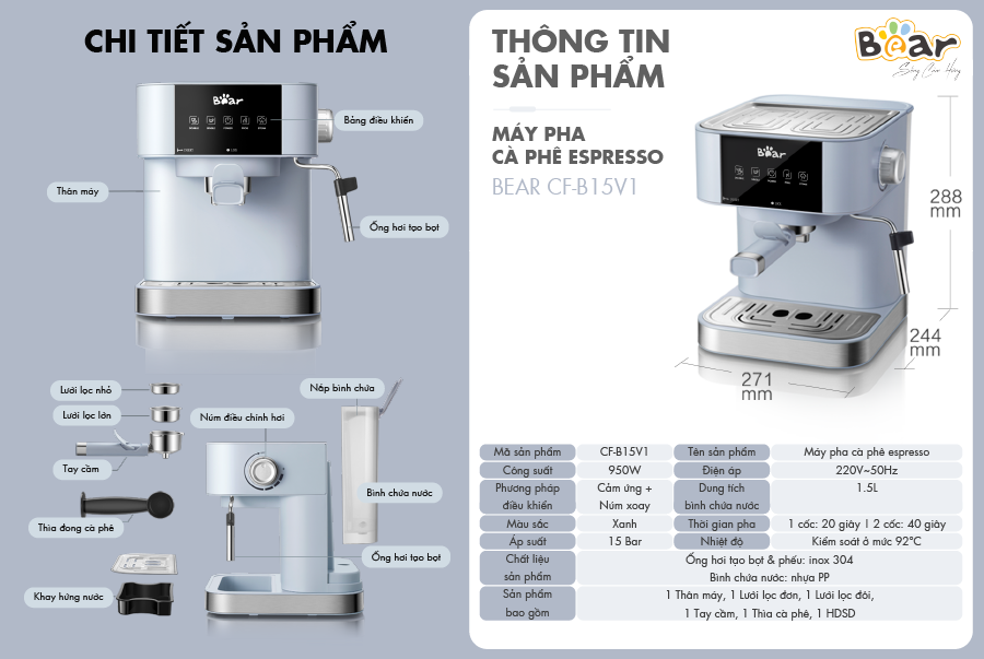 So sánh máy pha cafe bear B15V1 và B02v1 #bear