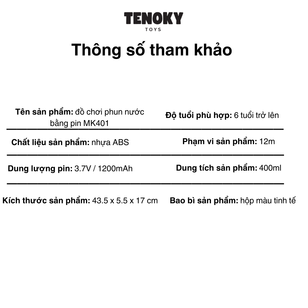 Đồ chơi phun nước chạy bằng pin MK401 là một sản phẩm hiện đại, được thiết kế với những nâng cấp đột phá, mang lại trải nghiệm thú vị cho các trận chiến phun nước. Tính
