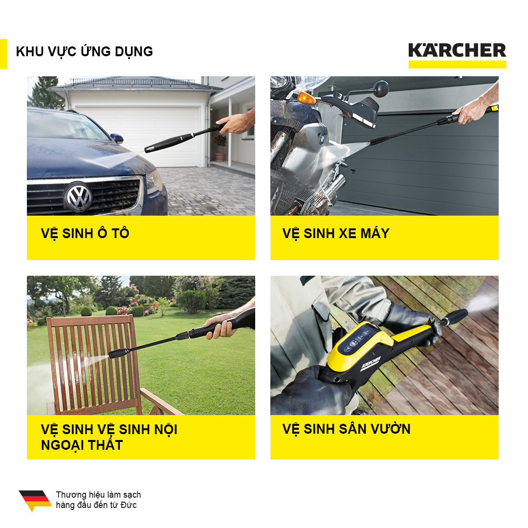 - Với phương châm luôn hướng tới khách hàng. Các sản phẩm khi mua ở Karcher luôn có chế độ bảo hành phù hợp cho khách hàng