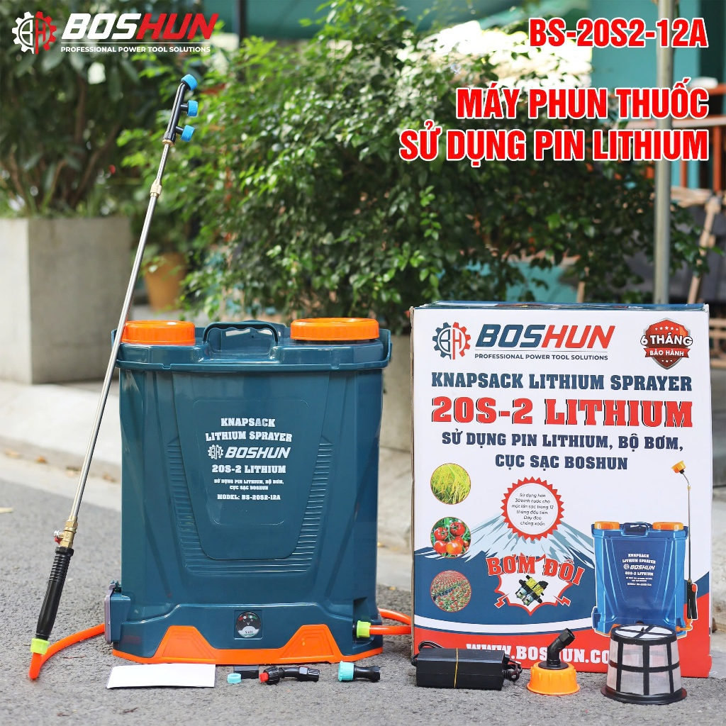 Máy Phun Thuốc Pin Lithium Boshun BS-20S2-12A” – Sức Mạnh Bơm Đôi, Nạp Một Lần Dùng Cả Ngày!