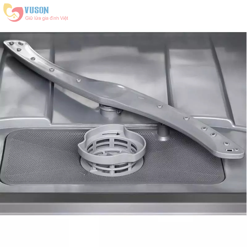 Thông tin sản phẩm MÁY RỬA BÁT | EUROSUN SMS60E08EB | MÀU ĐEN | 8 BỘ | SẤY KHÔ TRIỆT ĐỂ | DỄ DÀNG VỆ SINH | DIỆT KHUẨN TỐI ƯU | LƯU TRỮ HOÀN HẢO | TIẾT KIỆM ĐIỆN NĂNG | CÙNG BẾP VŨ SƠN.VN TÌM HIỂU KỸ HƠN VỀ SẢN PHẨM NÀY. Máy rửa bát Eurosun SMS60E08EB từ khi ra mắt trên thị trường đã nhanh chóng nhận được rất nhiều phản hồi tích cực. Liệu rằng đằng sau vẻ đẹp sang trọng vốn có đó, máy rửa bát Eurosun SMS60E08EB có điểm gì ưu việt đáng để lựa chọn và tin dùng? Hãy cùng Vũ Sơn.vn tìm hiểu trong bài viết sau đây. Hiện nay, có rất nhiều thương hiệu máy rửa bát trên thị trường. Trong đó máy rửa bát SMS60E08EB được người dùng yêu thích và tin dùng nhiều nhất. Đây là loại máy rửa bát cho phép người dùng rửa tối đa trên 8 bộ bát đĩa Châu Âu. Loại máy này do thương hiệu Eurosun sản xuất tại Thái Lan theo tiêu chuẩn CHLB Đức, sử dụng linh kiện chính hãng, đạt tiêu chuẩn năng lượng Châu Âu A+, cho chất lượng máy vượt trội. So với các loại máy rửa bát mini thông thường khác, loại máy rửa bát 8 bộ SMS60E08EB của Eurosun có nhiều ưu điểm vượt trội hơn, cho phép rửa được cả xoong nồi chảo. Dòng máy này rất thích hợp cho các gia đình ít người, từ 3-5 thành viên hoặc hộ gia đình có nhu cầu sử dụng ít. ĐẶC ĐIỂM CƠ BẢN Tổng quan thiết kế bên ngoài Máy rửa bát 8 bộ Eurosun SMS60E08EB có thiết kế hình chữ nhật dọc, có kích thước R550 x S500 x C590 mm. Nhìn bề ngoài, máy có hình dạng như một chiếc tủ lạnh mini, khá nhỏ gọn và tiện ích, dễ dàng di chuyển tới nhiều vị trí khác nhau trong căn bếp gia đình. Máy rửa bát Eurosun SMS60E08EB được thiết kế dạng độc lập, tách rời. Người dùng có thể linh hoạt đặt trên mặt bàn hoặc lắp âm tủ trong cánh tủ đều được. Tuy nhiên, nếu muốn lắp đặt âm thì cần phải đảm bảo diện tích khoang tủ lớn hơn kích cỡ của máy, để dễ dàng sử dụng và vệ sinh. Máy rửa bát 8 bộ Eurosun SMS60E08EB có nhiều điểm ấn tượng, độc đáo và mới lạ hơn so với nhiều loại máy rửa bát thông thường. Chất liệu của máy là thép không gỉ, bền chắc, toàn thể máy sử dụng tông màu đen sạch, đẹp tạo cảm giác sang trọng, hiện đại và mát mẻ. Mặt trước Mặt trước của máy rửa bát Eurosun SMS60E08EB có phần tay vịn màu đen, bên trong là khoảng trống hở để người dùng dễ dàng nắm được và kéo ra khi cần. Trên thanh tay vịn là bảng điều khiển của máy, chứa các phím bấm hiện đại, mỗi phím bấm đều có biểu tượng đi kèm và cụm từ tiếng anh tương ứng. Nếu người dùng chưa quen với việc sử dụng tiếng anh, khi mua máy rửa bát sẽ đi kèm sách hướng dẫn sử dụng để giới thiệu chi tiết các tính năng của máy. Tên thương hiệu được hiển thị ở góc trái của màn hình hiển thị. Dưới cùng là phần đáy được ngăn cách với phần thân bởi 1 đường khe hở khoảng 1-2cm. Mặt đáy Máy rửa bát Eurosun SMS60E08EB có mặt đáy bằng phẳng hoàn toàn như nhiều loại máy khác. Mặt đáy của máy có 4 trụ màu, tiếp xúc trực tiếp với sàn đất, làm bệ đỡ chính cho trọng lượng của máy 4 trụ ở 4 góc đều được làm từ chất liệu thép không gỉ nên khả năng chịu lực tốt, chịu nhiệt và tính thích ứng với môi trường cao, không lo về vấn đề han gỉ, ẩm mốc. Mặt đằng sau Mặt đằng sau sẽ toàn bộ khung màu đen, chứa ống thoát nước dài 158cm và ống cấp nước dài 154cm. Ngoài ra còn hệ thống dây điện dài 149cm. Tất cả những vật dụng liên quan đến dây điện, ống dẫn nước được sắp xếp ở mặt sau để tiết kiệm diện tích và đảm bảo tính thẩm mỹ cho máy rửa bát Eurosun SMS60E08EB. Thiết kế bên trong Máy rửa bát Eurosun SMS60E08EB có 2 khay rửa di động hay còn gọi là 2 giá rửa bát đĩa. Khay trên là khay tiếp xúc gần sát với phần trán lắp trên của máy. Khay trên chủ yếu rửa các loại bát đĩa nhỏ, cốc, ly, vật dụng nhỏ không tốn diện tích.