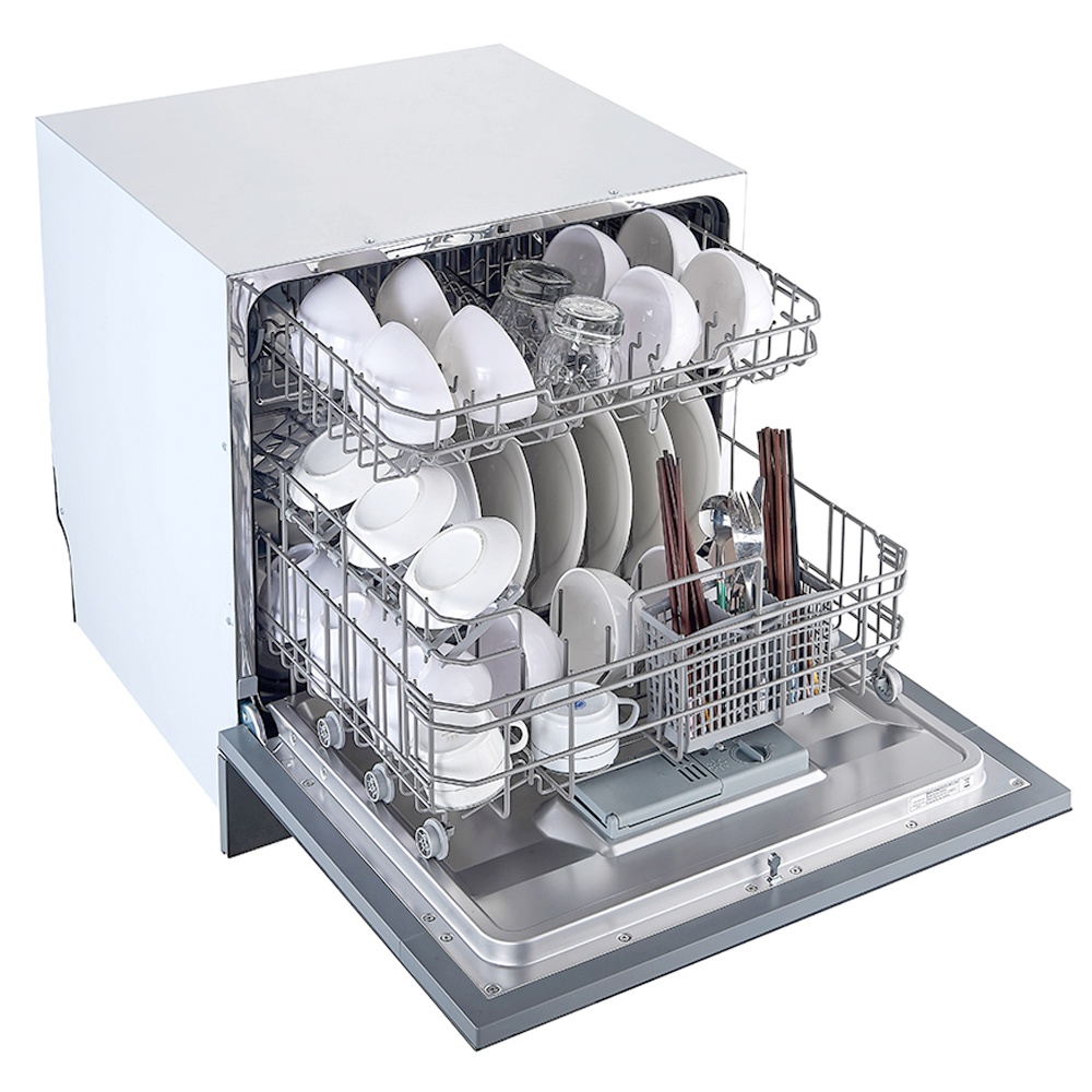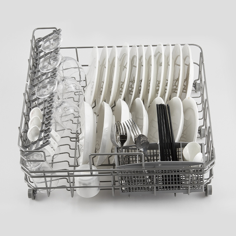 Máy rửa bát độc lập hoặc âm tủ 2 khay chứa cơ động + 1 khay đề thìa, đũa, dĩa, dao, kéo Tiết kiệm đến gần 50% năng lượng và thời gian, ngoài ra giúp