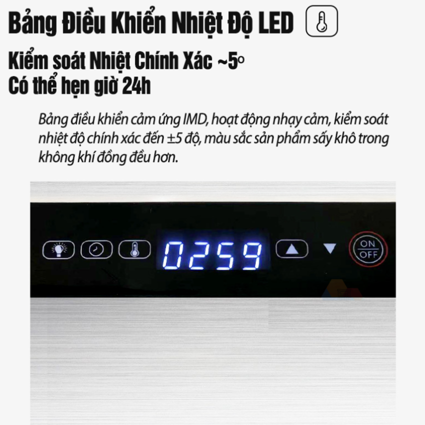 - Hẹn giờ thời gian sấy lên đến 24h, đa dạng các món ăn sấy