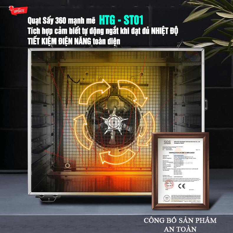- Ngoài ra Máy sấy thực phẩm inox HTG-ST01 sở hữu cho mình cơ chế sấy ngang tuần hoàn 360º, đảm bảo hiệu năng vượt trội hiệu quả cao của máy sấy, cũng như tiết kiệm điện năng cho người dùng khi sử dụng.