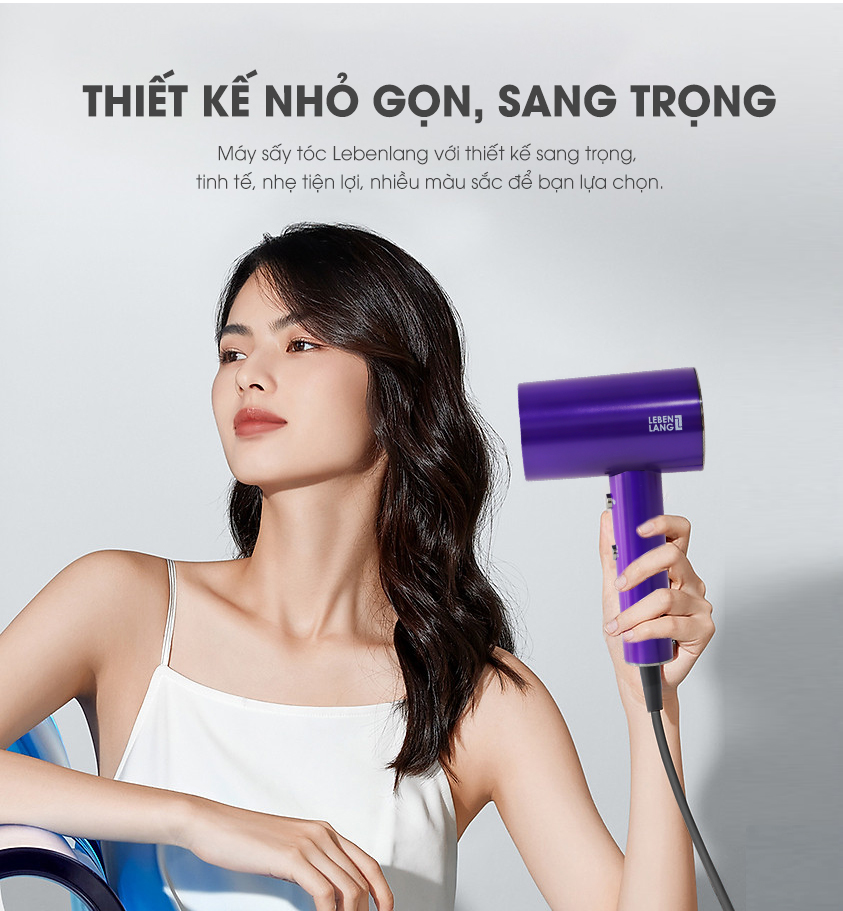 Máy sấy tóc mini Lebenlang LBL3083, chống xơ rối tóc bằng công nghệ ion 1200W, nhỏ gọn tiện lợi, bảo hành 2 năm - hàng chính hãng 6 LÝ DO NÊN CHỌN MÁY SẤY TÓC MINI LBL3083 CỦA LEBENLANG - Công Suất Mạnh Mẽ 1200W - Công Nghệ Ion Chống Xơ Rối Tóc - Chất Liệu Nhựa PC và ABS