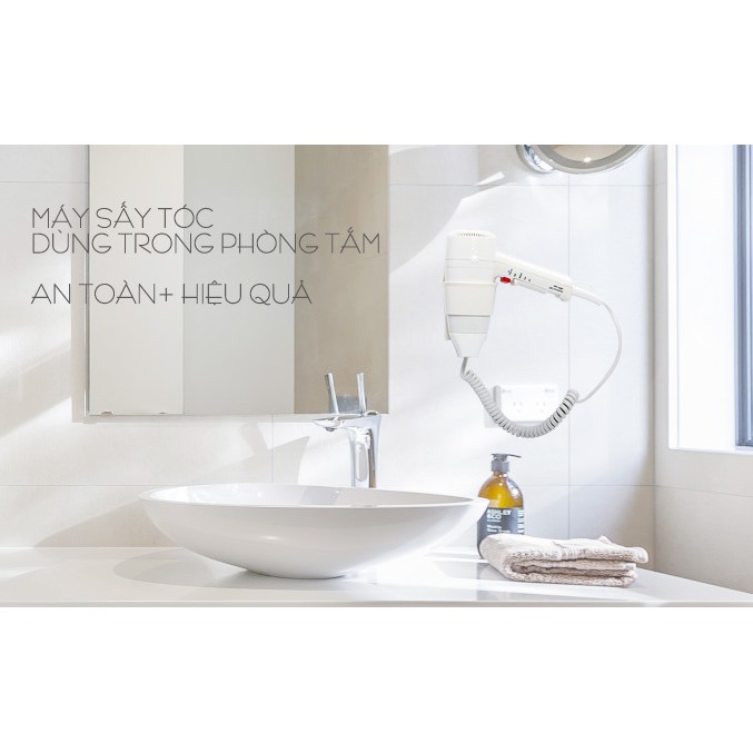 MÁY SẤY TÓC TREO TƯỜNG 3122 Điện áp: AC220V 50Hz Công suất: 1200W Kích thước: 230x90x185mm Lớp chống thấm 1PX1 Tốc độ gió: 13m/s Lưu lượng gió: 71m3/h Chất liêu: nhựa ABS có ổ cấm