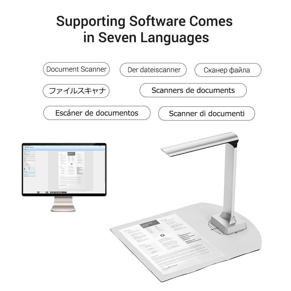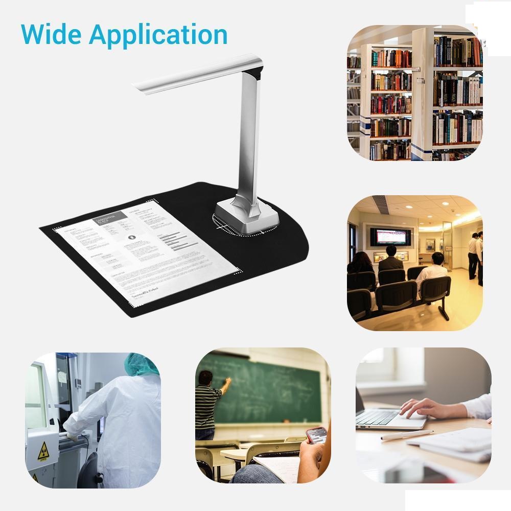 Thông số sản phẩm: Loại quét: Tài liệu, biên lại, thẻ ID, ghi chú, tranh, ảnh, tạp chí, sách, các vật ba chiều v.v... Kích thước chụp: A4,A5,A6,A7, Danh thiếp, hóa đơn, chứng từ Tốc độ quét: khoảng 1 giây Độ phân giải: 1600x1200 (2M), 2048x1536 (3M), 2592x1944 (5M) Màu ảnh: 24-bit Định dạng ảnh: JPEG, GIF, BMP, TIF, PDF Giao diện: Kết nối USB 2.0 Kiểm soát hình ảnh: Điều chỉnh độ sáng, điều chỉnh độ bão hòa,điều chỉnh độ phơi sáng,độ sắc nét, v.v.. Lấy nét: Tiêu cự chính xác có thể điều chỉnh Thu phóng: Tự điều chỉnh Nguồn sáng: Ánh sáng tự nhiên, và nguồn sáng bàn LED tích hợp Điều chỉnh nguồn sáng Các tính năng khác: Quay phim DV,nhận dạng OCR, v.v.. Yêu cầu hệ thống: CPU P4 hoặc tương tự, trên 512M, hỗ trợ Windows 2003,XP, Win 7, MS Direct X9.0 trở lên