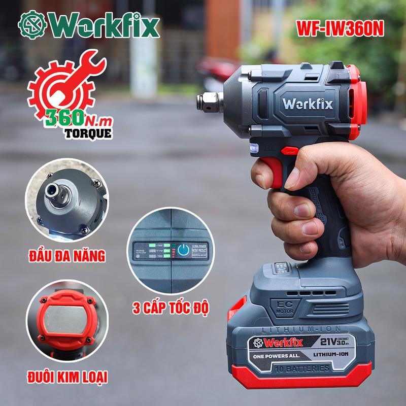 Máy Siết Bulong Workfix 650N.m 2 Pin 21V/4Ah PLUS - IW650NBL - Lực Siết 650N mở ốc lớn - 4 Cấp Tốc Độ - Motor Brushless - Chân Pin Phổ Thông PLUS - Bảo Hành