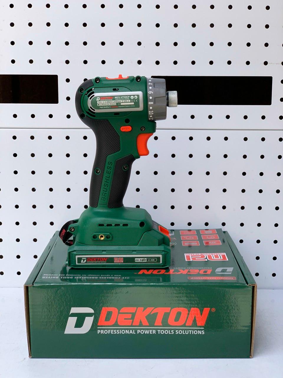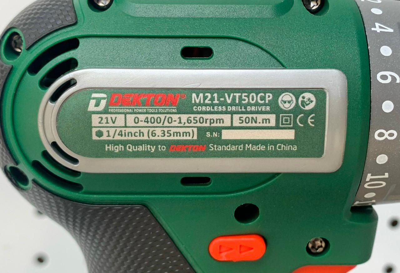 DEKTON là thương hiệu được bảo hộ tại Việt Nam, do công ty Thanh Xuân Nam sáng lập Tất cả các dòng máy dụng cụ cầm tay Dekton đươc sản xuất tại Trung Quốc, theo tiêu chuẩn của nhà sáng lập Việt Nam, sản phẩm Dekton tốt, có giá thành hợp lý khi bán ra cho người tiêu dùng Tất cả các máy dụng cụ cầm tay DEKTON trước khi đưa ra thị trường đều được kiểm tra kỹ lưỡng,được kiểm định về chất lượng, sản phẩm có thiết kế chắc chắn, 100% là Roto được làm bằng đồng, thân máy làm tự nhựa cao cấp. Thông số kỹ thuật -Model: M21-VT50CP -Bộ sản phẩm chỉ gồm thân máy -Hãng: Dekton -Sản Xuất: Trung Quốc -Sử dụng pin: 21V (Chân Pin Makita) -Loại pin: Lithium-ion -Motor Brushless -Chế độ khoan :Lực siết 50N -Chế độ bắt vít chia lực 20 cấp độ -Tốc độ không tải: Cao / Thấp: 0 – 1,1560 / 0 – 400 v/p -Khả năng khoan: Thép/ Gỗ: 12 / 34 mm -Trọng lượng tịnh: 0.64 kg -Bảo hành chính hãng 6 tháng