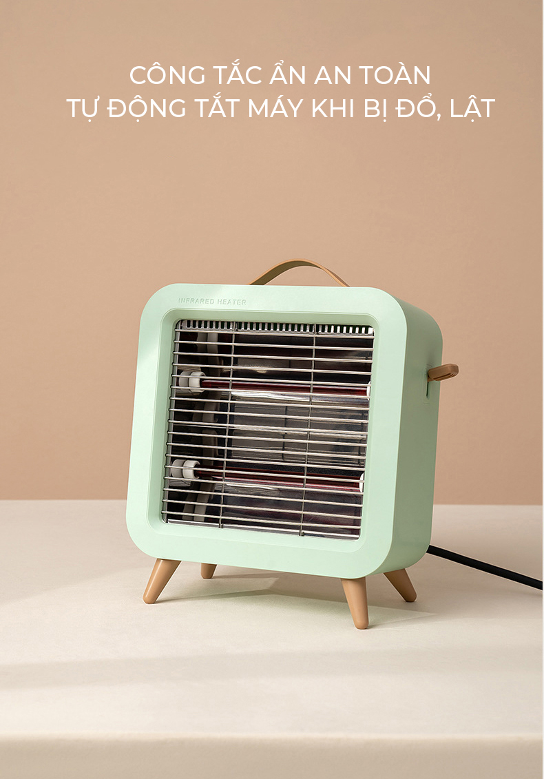 Thiết kế nhỏ gọn, tiện dụng Sưởi ấm nhanh, không gây tiếng ồn 3 mức phát nhiệt Có tính năng quay đảo hướng phát nhiệt, phạm vi phát nhiệt rộng Lưới tản nhiệt thiết kế
