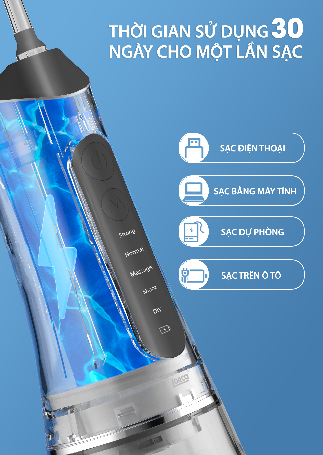 - 5 chế độ sử dụng đa dạng: Sản phẩm có 5 chế độ sử dụng khác nhau: Mạnh, Bình thường, Mát-xa, Bắn, DIY. Điều này mang đến nhiều lựa chọn chăm sóc răng miệng phù hợp với từng nhu cầu của người dùng.