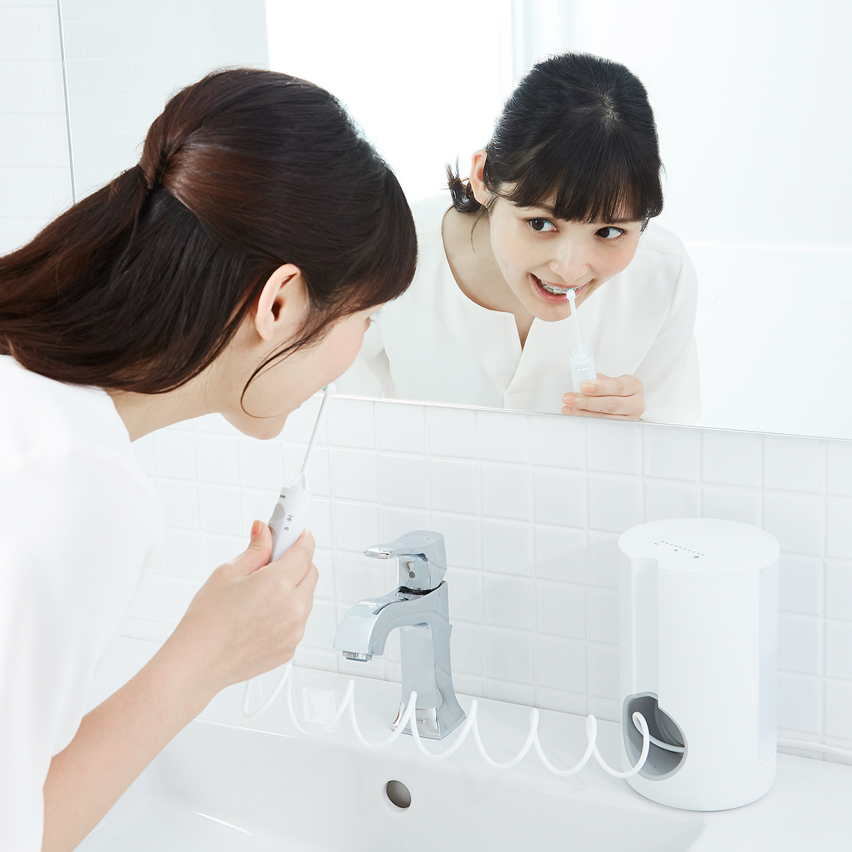 Máy tăm nước vệ sinh răng miệng Panasonic EW1613W451 - Thiết kế đơn giản và tinh tế Chăm sóc 2 trong 1 với đầu phun tia nước và bàn chải kẽ, làm sạch tất cả