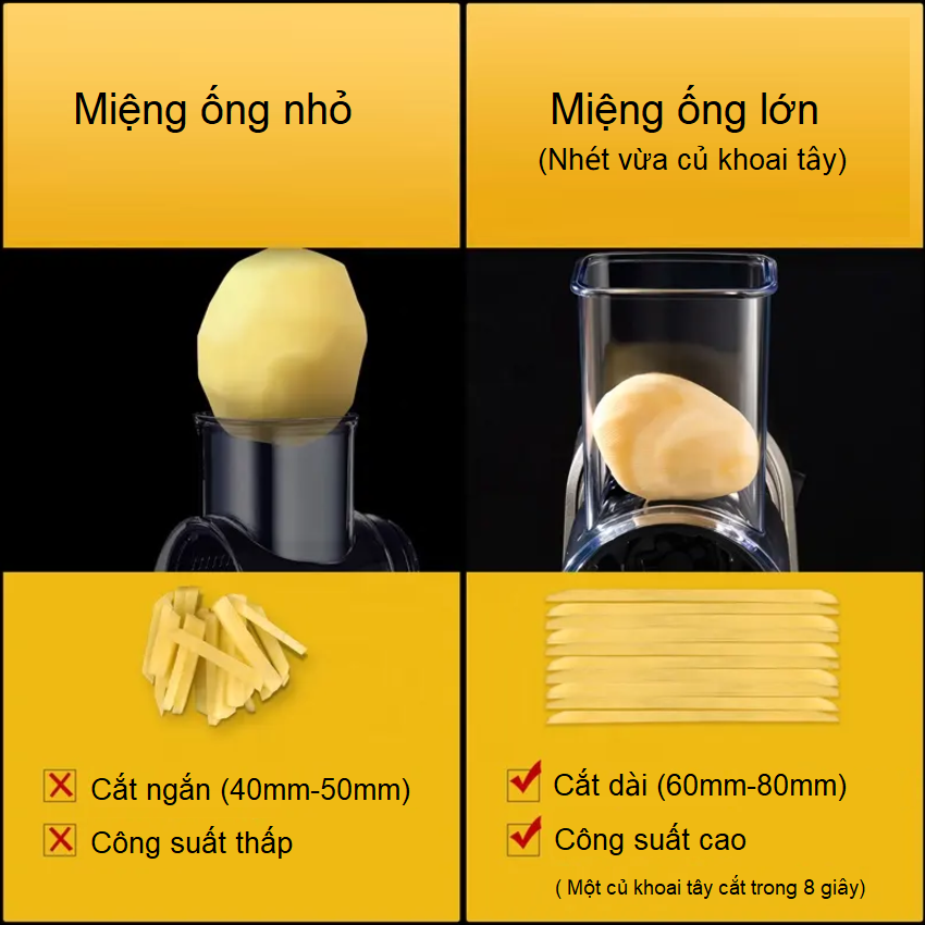 - Miệng ống lớn, giúp thái nhiều loại rau củ khác nhau