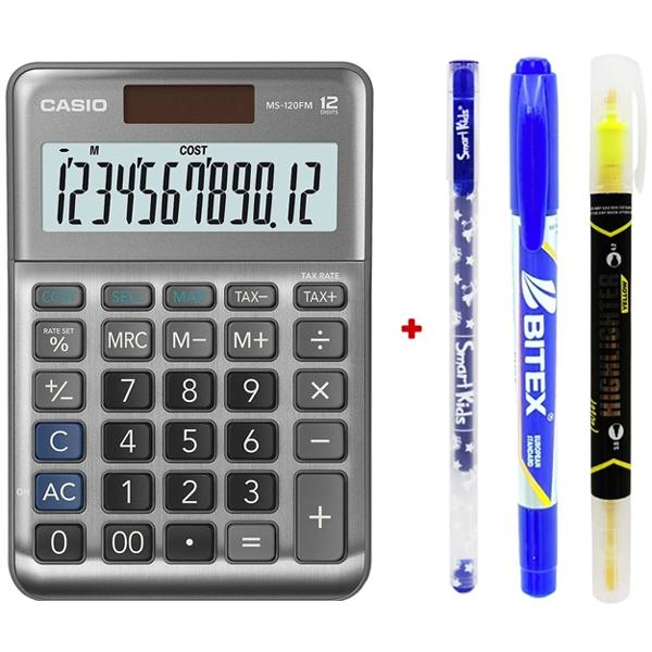 ✨Máy Tính Văn Phòng Casio MS - 120FM - Màu Xám - Kèm Quà Chất