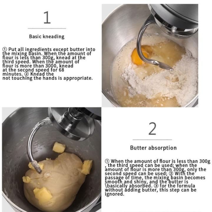 - Mức 1-4 Dùng nhào các loại bột nặng như bánh mì,... Nên đánh từ mức thấp nhất rồi chỉnh dần lên mức cao.