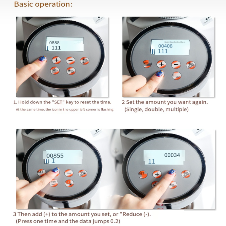 - Máy có bảng điều khiển cơ tích hợp màn hình LCD dễ thao tác. Chỉ bằng một cái chạm nhẹ bạn có thể tùy chỉnh định lượng cafe cho mỗi ly một cách chính xác. Màn hình có hiển thị các thông số một cách rõ ràng. Chất lượng hạt cà phê xay ra đều và mịn nhất