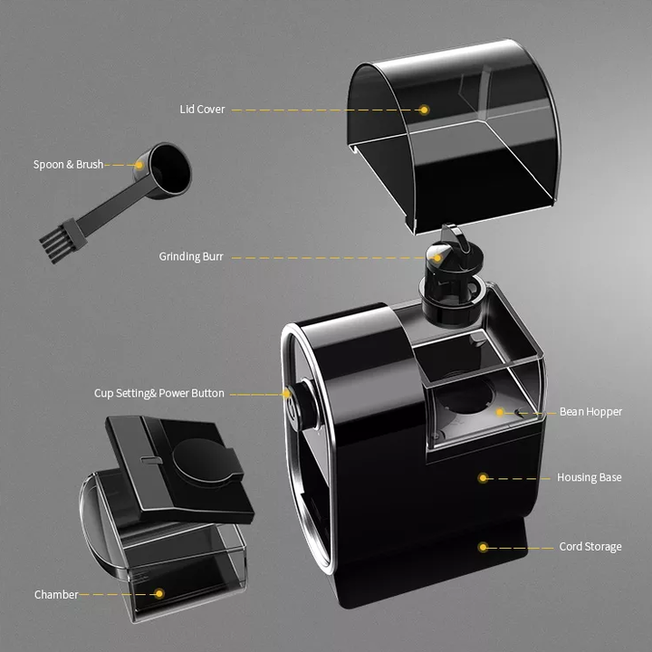 - Khay chứa cà phê trong suốt giúp bạn dễ dàng quan sát cà phê đang xay đồng thời dễ dàng tháo lắp tạo sự thuận tiện cho bạn khi chùi rửa.