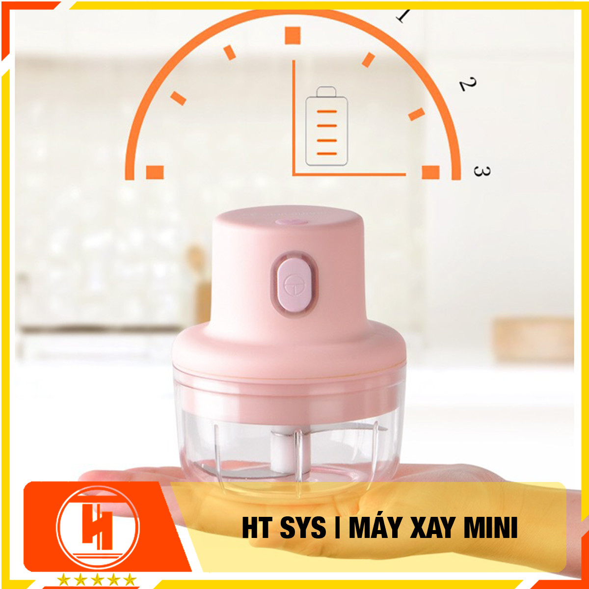 Máy xay tỏi ớt bằng pin HT SYS - Sạc USB- Dung tích 250ML - Hàng Nhập Khẩu