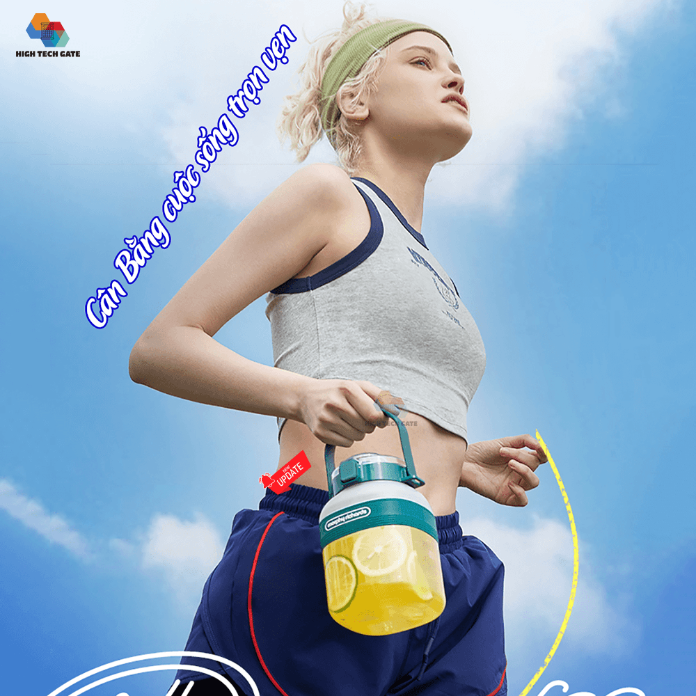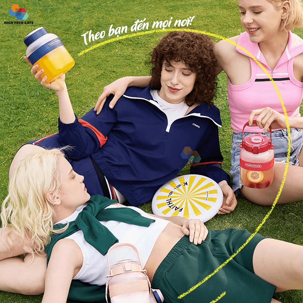 Mua tại Tiktok"* Nhỏ gọn với khối lượng 0.4kg, chỉ bằng 25 % so với máy ép bình thường, dung tích 350ml * Thiết kế cối xay kiêm bình nước di động, thuận tiện mang theo khi