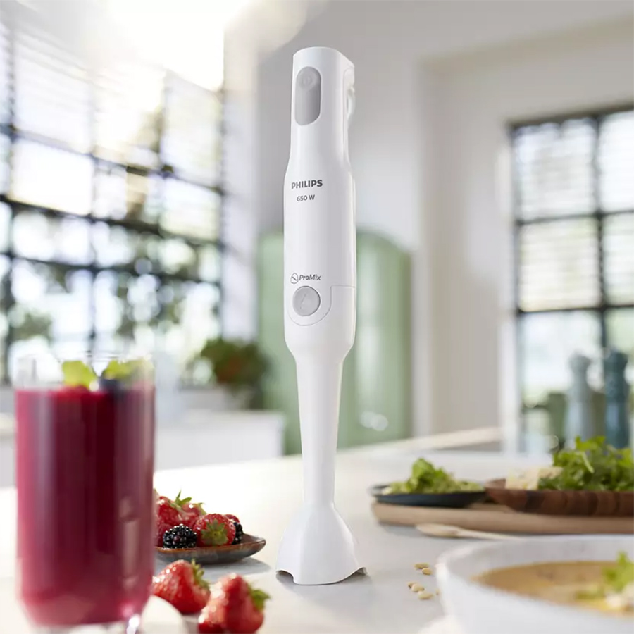 Máy xay sinh tố cầm tay kết cấu vững chắc, màu trắng sáng sạch đẹp, cầm nắm thuận tay, dễ xay