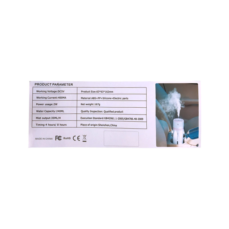 Thông số kỹ thuật: Chất liệu: ABS + PE Độ phủ: 20m2 - 100m2 Nguồn điện vào: DC12V Điện tiêu thụ: 5w Dung tích bình chứa: 200ml Thời gian hoạt động: thiết lập hoàn toàn