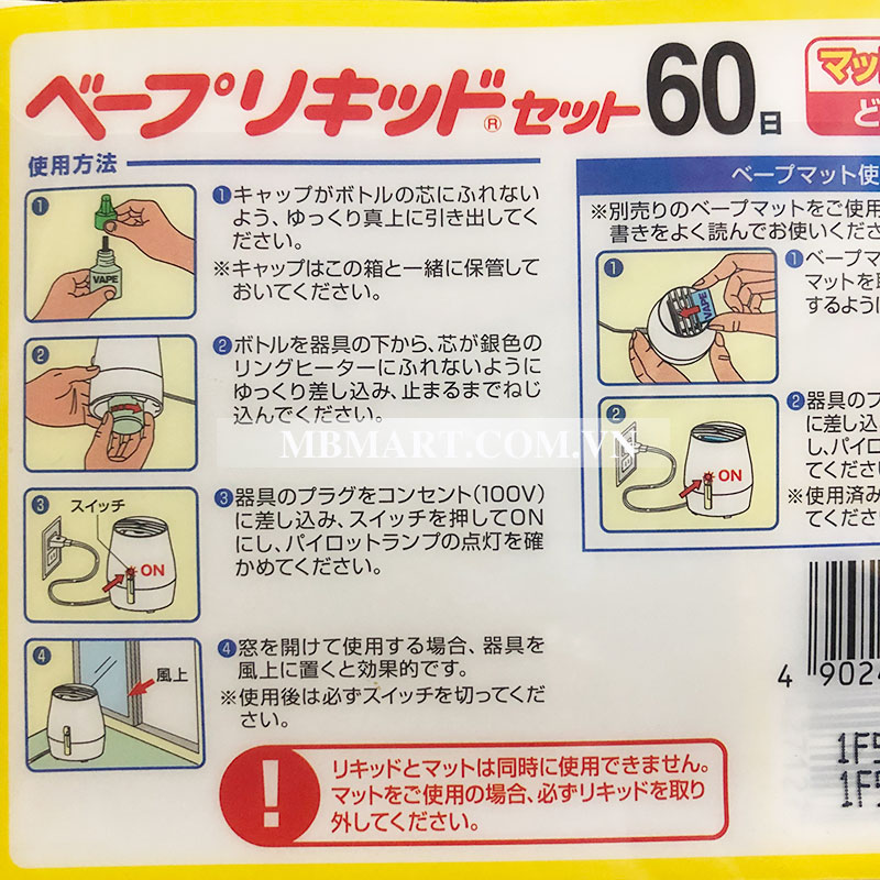 Tinh dầu đuổi muỗi được sản xuất tại Nhật Bản dùng an toàn đuổi muỗi hiệu quả. Lọ tinh dầu đuổi muỗi dùng cho cả máy đuổi muỗi , thiết bị đuổi muỗi sản xuất phục vụ cho thị trường nội địa Nhật Bản nên sử dung điện 110V Với dòng điện phổ biến hiện nay trong các gia đình Việt Nam là 220V, bạn cần có một thiết bị chuyển nguồn 220V-110V để cho hiệu quả tốt nhất. Bạn cũng có thể sử dụng trực tiếp điện 220V tuy nhiên máy sẽ không bền hay bị cháy đèn và lượng tinh dầu bị đốt sẽ nhanh hết hơn.