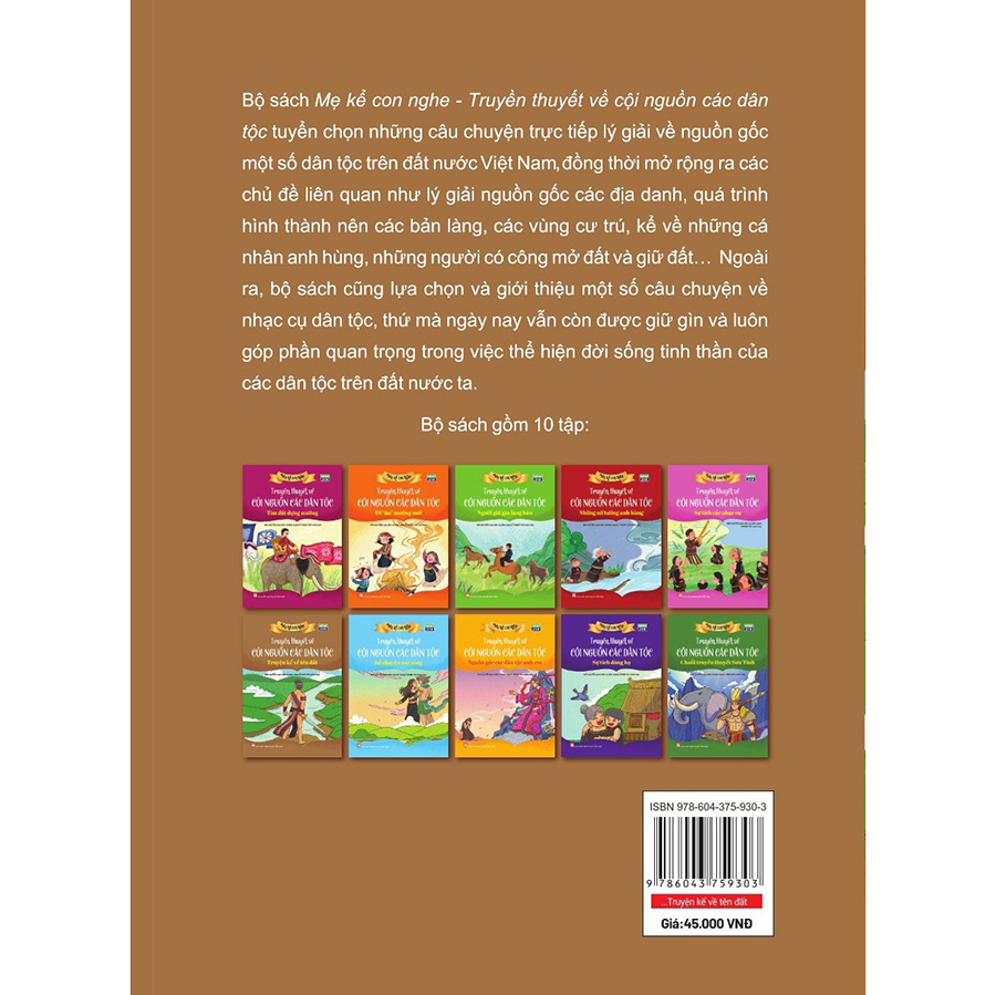 Bộ sách “Mẹ kể con nghe - Truyền thuyết về cội nguồn các dân tộc” là tuyển chọn một số truyện kể của các dân tộc trên đất nước Việt Nam. Việc tuyển chọn dựa trên tiêu chí hàng đầu là tính dân tộc, tiếp đó là nội dung của các câu chuyện kể. Cụ thể, bộ sách này lấy cốt lõi là những câu chuyện trực tiếp lý giải về nguồn gốc các dân tộc đồng thời mở rộng ra các chủ đề liên quan như lý giải nguồn gốc các địa danh, quá trình hình thành nên các bản làng, các vùng cư trú, kể về những cá nhân anh hùng, những người có công mở đất và giữ đất… Ngoài ra, bộ sách cũng lựa chọn và giới thiệu một số câu chuyện về nhạc cụ dân tộc, thứ mà ngày nay vẫn còn được giữ gìn và luôn góp phần quan trọng trong việc thể hiện đời sống tinh thần của các dân tộc trên đất nước ta.