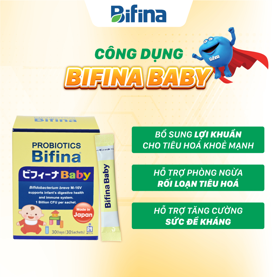 ✨Men vi sinh Bifina Baby Nhật Bản – Hộp 30 gói – Hỗ trợ bổ sung lợi khuẩn cho trẻ sinh non, sinh mổ, dùng sữa công thức
