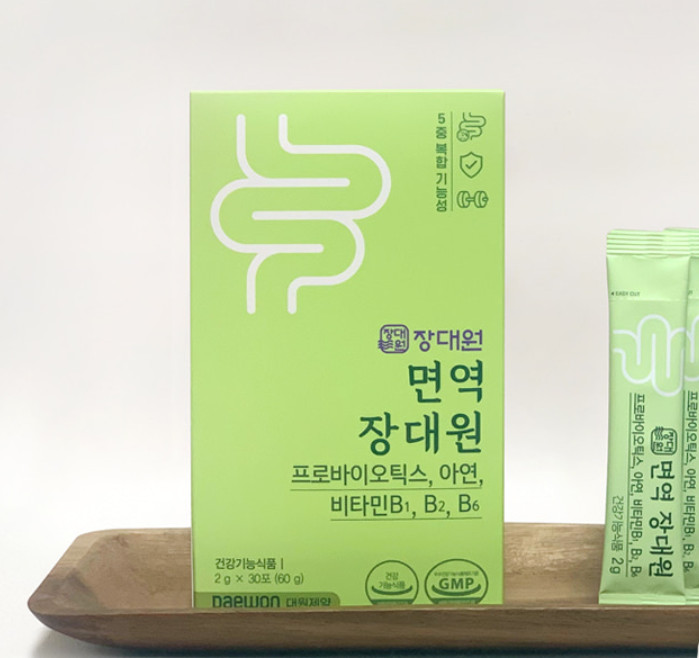 Bổ sung Kẽm, Vitamin B1, B2, B6 và lợi khuẩn giúp tăng cường hệ vi sinh đường ruột. Hỗ trợ giảm các triệu chứng rối loạn tiêu hóa do loạn khuẩn, nhiễm khuẩn đường ruột: tiêu chảy, đầy hơi, khó tiêu, đi phân sống, rối loạn tiêu hóa, táo bón chỉ 1 gói mỗi ngày. Men vi sinh Jang Daewon bổ sung 5 dưỡng chất trong 1 sản phẩm: kẽm, vitamin B1, B2, B6 và probiotics Jang Daewon là sản phẩm men bán chạy tại Hàn Quốc của tập đoàn Dược phẩm Daewon Pharm, bổ sung 19 chủng lợi khuẩn từ 2 nhóm lợi khuẩn chính trong đường ruột là  Lactobaccillus và Bifido. Bổ sung đồng thời Prebiotics ( FOS- chất xơ) cho hệ tiêu hóa thêm khỏe mạnh. Jang Daewon mang lại hiệu quả cao trong việc hỗ trợ viêm nhiễm đường ruột,  cân bằng hệ vi sinh đường ruột nhờ khả năng sống sót lên tới 90% của lợi khuẩn khi vào đến đường ruột từ công nghệ sản xuất phủ màng kép Probiocap của viện Rosell. Công dụng men vi sinh Immune Jang Daewon Probiotics