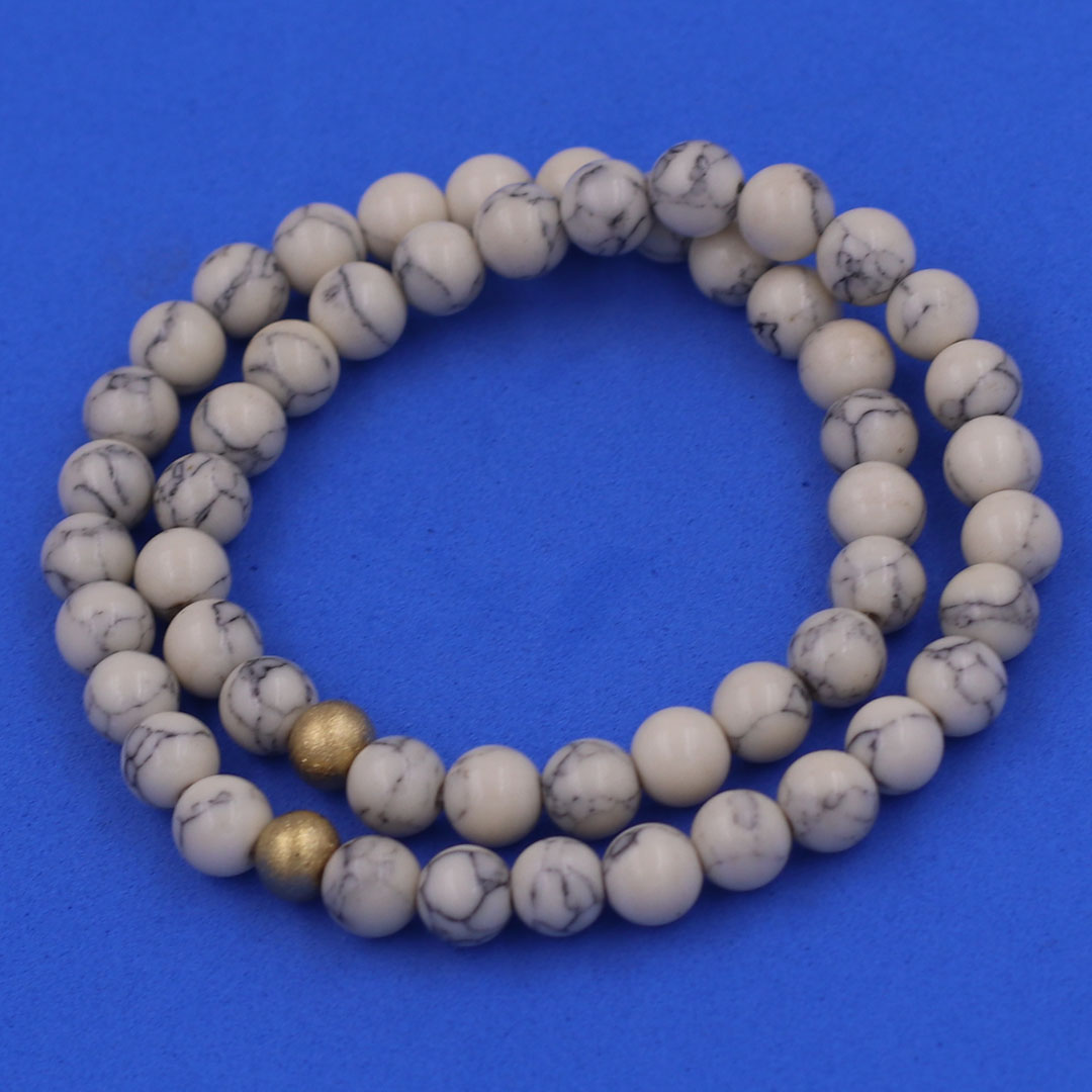 ✨[Mệnh Kim, Thủy] Vòng Chuỗi Đôi 6 Ly San Hô Trắng Sọc Charm Bi Inox VSHTRSHBD