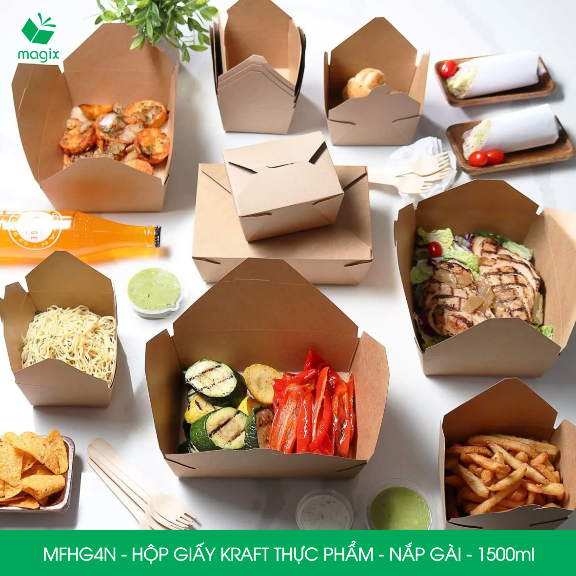 • MFHG4N - Hộp giấy Kraft đựng thực phẩm - Nâu 1.500ml (Miệng: 21.5x16 cm - Đáy: 19.5x14 cm - Cao: 4.8 cm)
