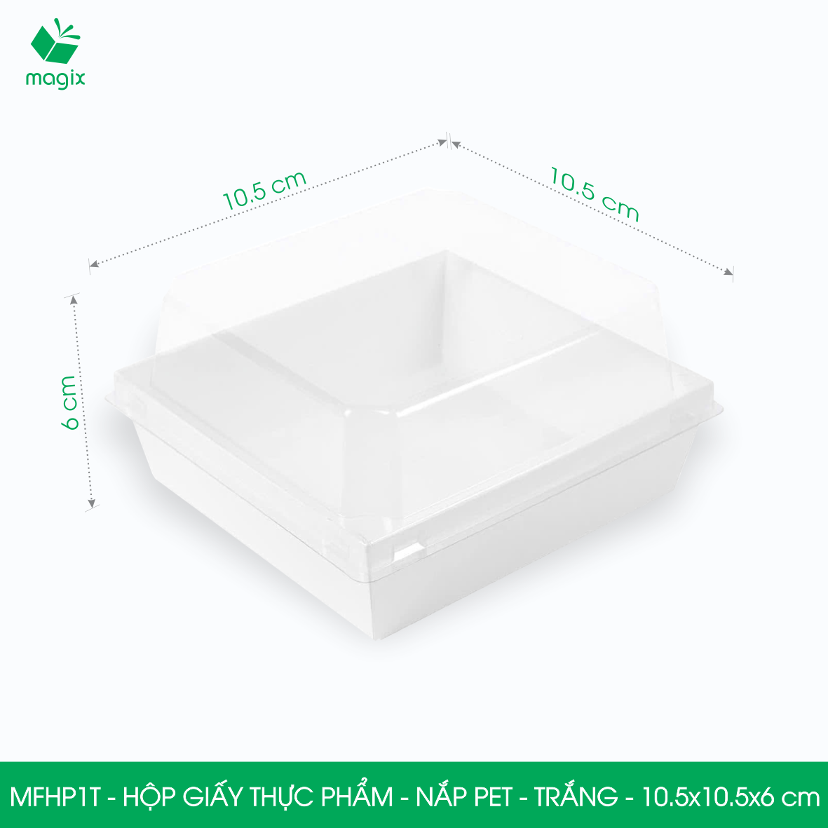 • MFHP1T - Hộp giấy thực phẩm nắp Pet - Trắng - 10.5x10.5x6 cm