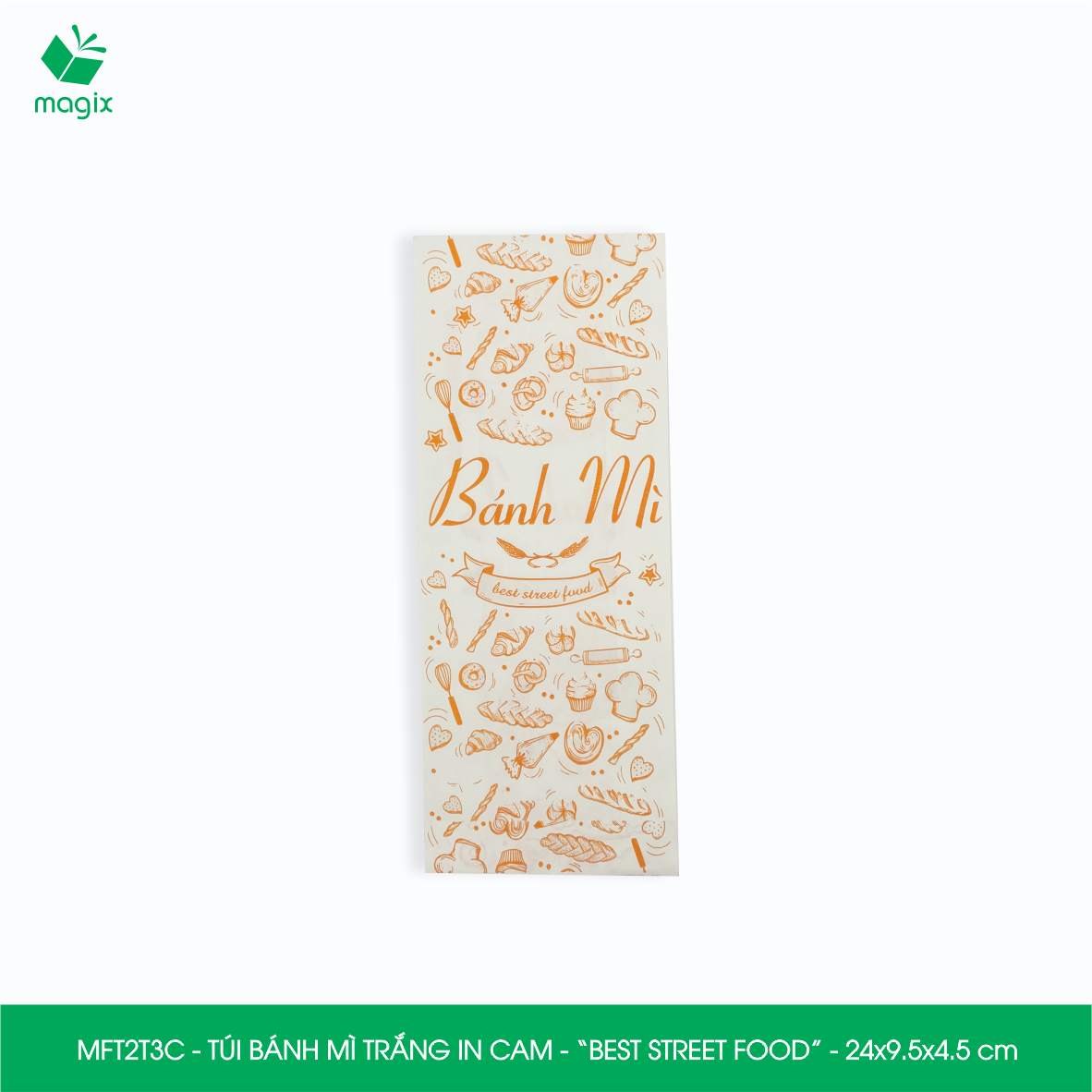 • MFT2T3C - Túi bánh mì trắng in cam - "Best street food"