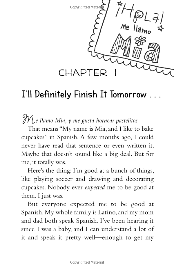 Mia is getting used to her new family now that her mom is remarried to Eddie and she's gained a new stepbrother, Dan. She's in the groove of going to her dad's house on the weekends, and everything is going pretty well at home and at school. Well, except for Spanish class. Mia's parents and stepfather speak it and she does too--but speaking it and writing it are two different things, and somehow Mia ends up in the hands of the merciless Mrs. Alvarez and almost failing Spanish class. Still, things are so good at home that Mia doesn't want to worry anyone or rock the boat. But when her parents find out--all three of them--she realizes that instead of having two parents, she's lucky enough to have three, and all three of them pitch in to help her. A baker's dozen is a bonus!
