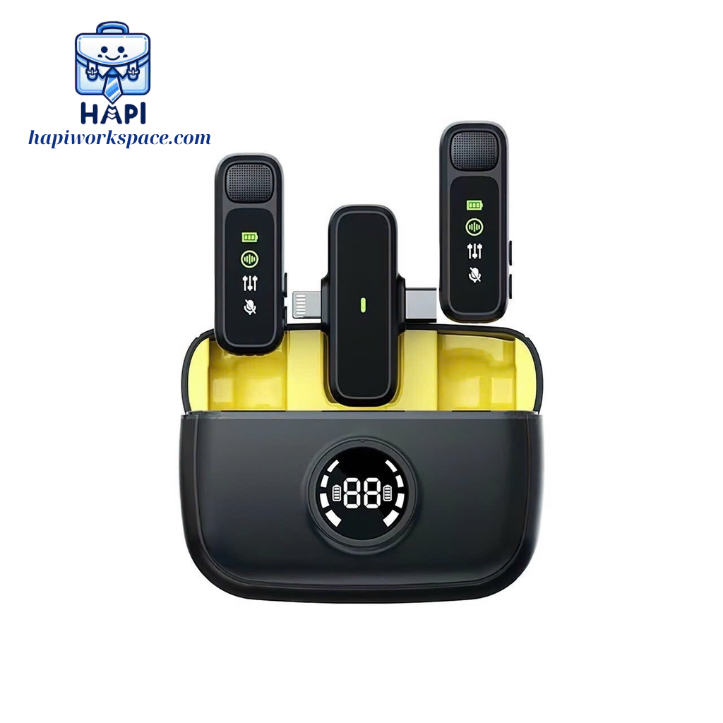 Mua tại TiktokKhông cần sử dụng app hay kết nối bluetooth, cực kì dễ sử dụng với cơ chế Plug & Play. Thiết kế hộp sạc thông minh sáng tạo vừa là nơi lưu trữ vừa kiêm chức năng sạc cho bộ mic, giúp bảo vệ thiết bị và tiện lợi khi mang đi với tổng thời gian sử dụng lên đến 24 giờ Công nghệ chống ồn chủ động giúp lọc bỏ tạp âm môi trường. Chất lượng thu âm cao, phù hợp cho livestream, quay vlog nơi ồn ào, họp online hay phỏng vấn Đồ hoàn thiện tốt với chất liệu nhựa ABS chống cháy đạt chuẩn an toàn RoHS vô cùng bền bỉ Thiết kế 2 trong 1 với đầu thu tích hợp 2 cổng 'Lightning' và Type-C. Không cần mua nhiều loại mic cho các thiết bị khác nhau, cực kì tiện lợi và tiết kiệm THÔNG TIN CƠ BẢN