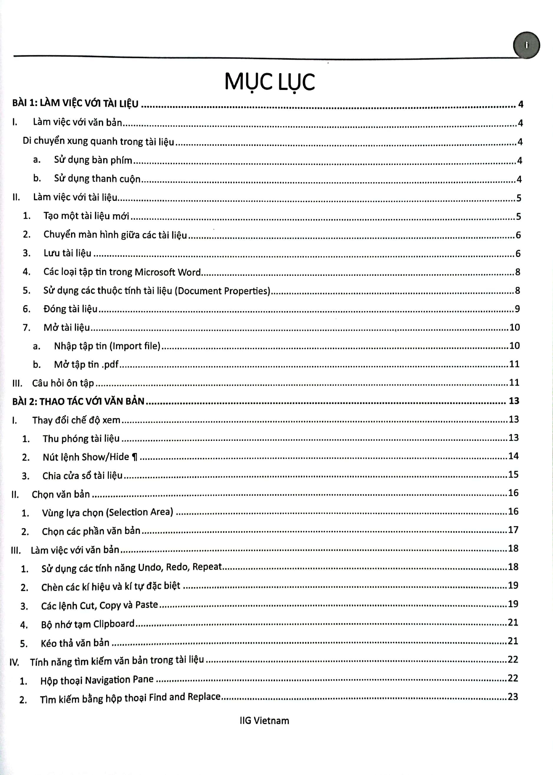 • Sách MOS Word 2019 được chia thành nhiều bài học, mỗi bài học đề cập đến một chủ đề cụ thể, bao gồm: