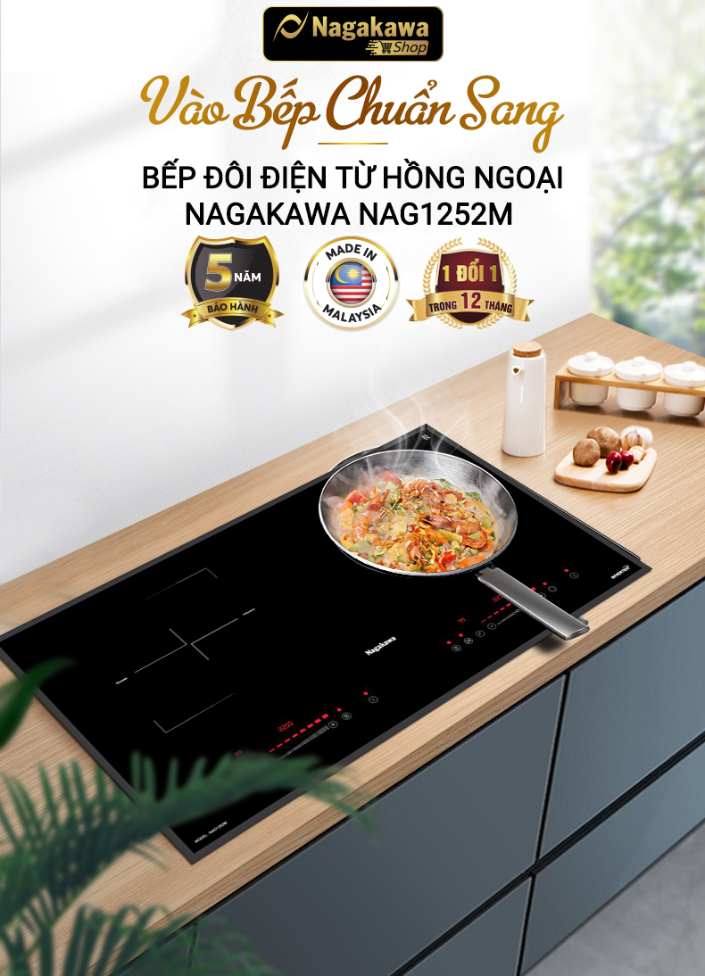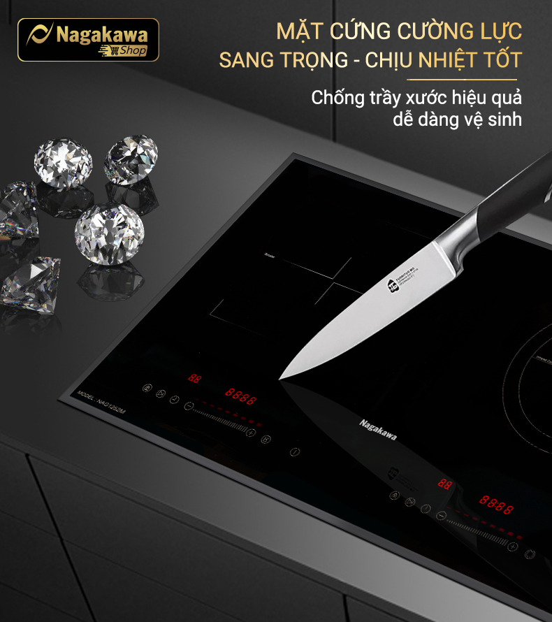 Đặc điểm nổi bật Bếp được tích hợp chức năng NaSYNC - Tự động kết nối điều khiển máy hút mùi nagakawa - Mỏng hơn 30% tiết kiệm không gian tủ bếp - Vật liệu
