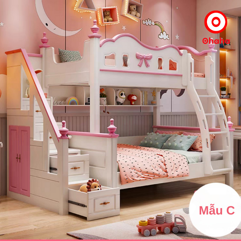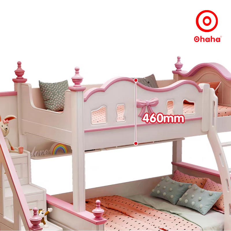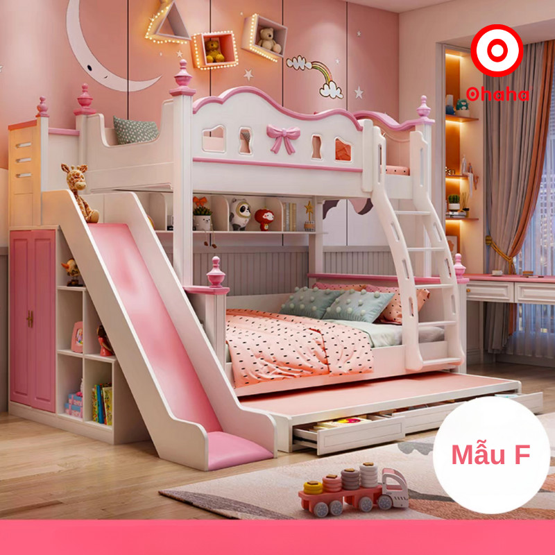 Giường tầng thông minh cao cấp Ohaha 3 tầng có cầu trượt - GTCC032 là mẫu giường tầng cao cấp được rất nhiều khách hàng yêu thích bởi thiết kế mang phong cách ngọt ngào tích hợp cùng nhiều tính năng thông minh như hộc cầu thang, giường phụ, cầu trượt, tủ áo,