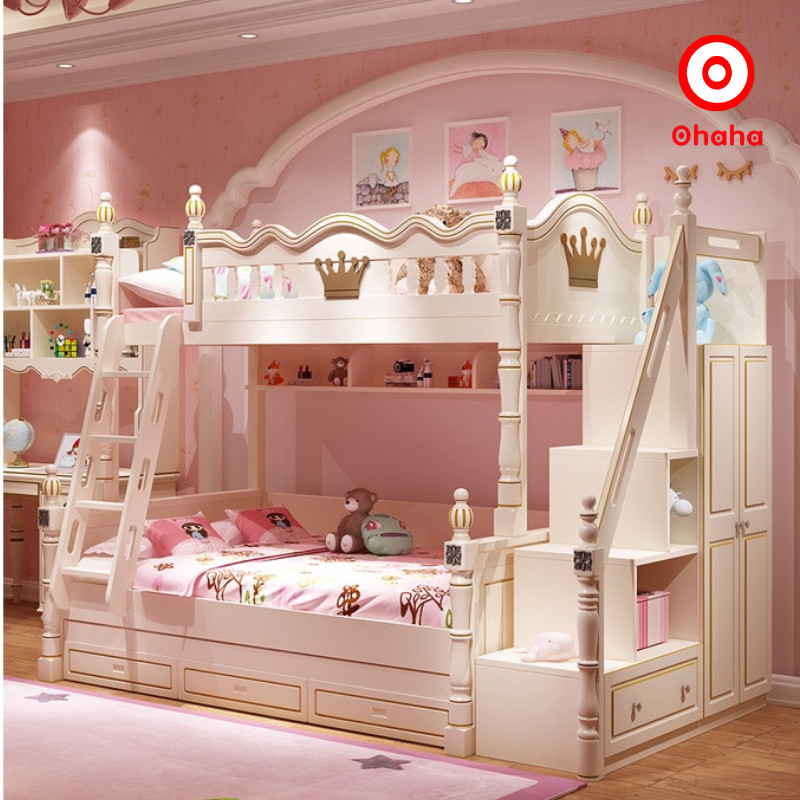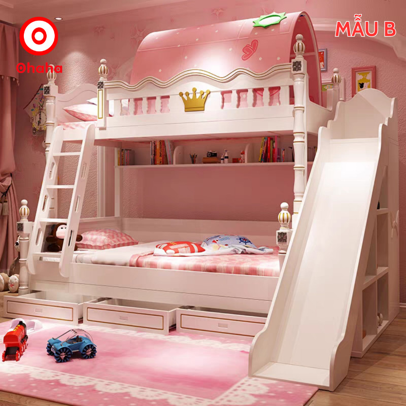 Giường tầng thông minh cao cấp Ohaha 3 tầng - GTCC031 là mẫu giường tầng cao cấp được rất nhiều khách hàng yêu thích bởi thiết kế mang phong cách ngọt ngào tích hợp cùng nhiều tính năng thông minh như hộc cầu thang, giường phụ, cầu trượ