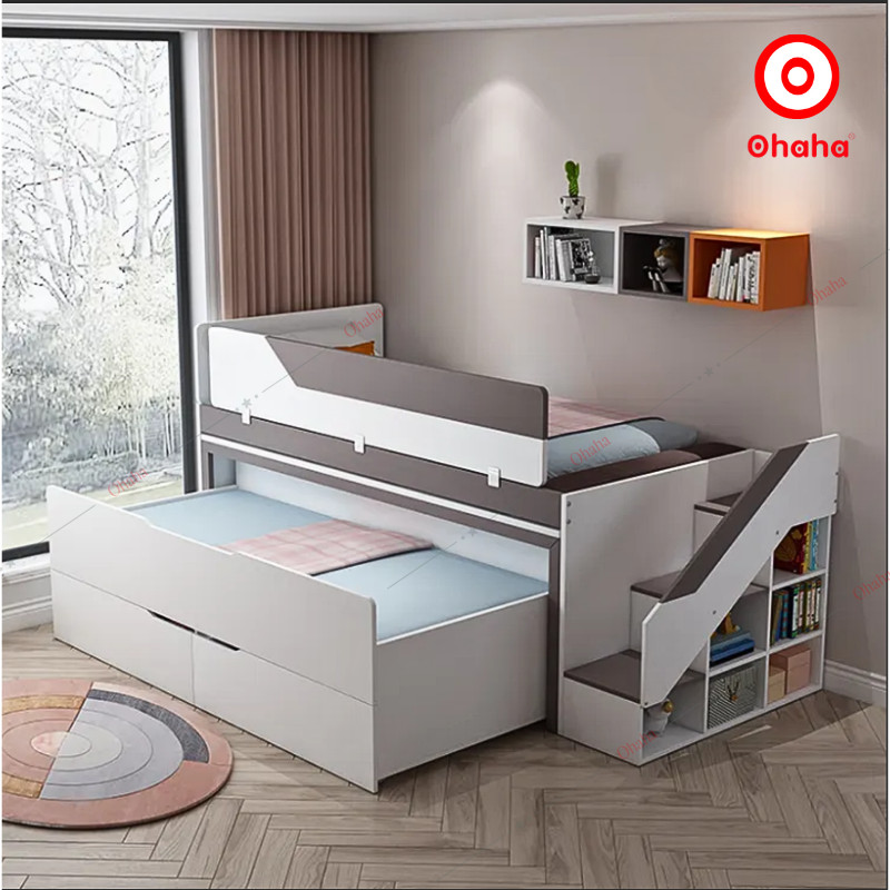 ** Sản phẩm chỉ bao gồm 1 giường và không đi kèm phụ kiện khác ** Giường tầng thông minh Ohaha kết hợp tủ quần áo - GTTM043 là mẫu giường được rất nhiều khách hàng yêu thích
