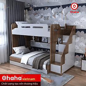✨[ Miễn phí vận chuyển và lắp đặt tại TP.HCM] Giường tầng thông minh hiện đại Ohaha kèm hệ tủ mở bên hông - GTHĐ021