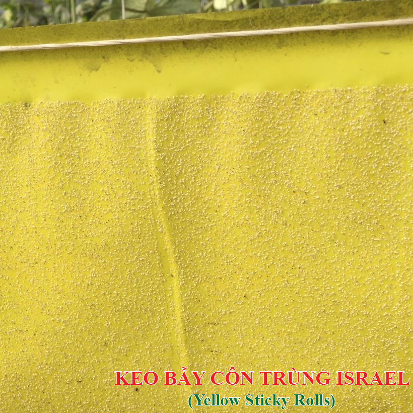 - Miếng Keo Dính Vàng Israel trong nông nghiệp của Israel là dạng cuộn màu vàng đặt trưng để “Dụ” các loại côn trùng bay, côn trùng có cánh dính vào lớp keo có sẵn. Sự bám dính của lớp keo dẫn đến cái chết côn trùng.