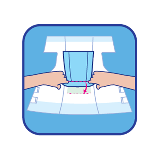 Ấn nhẹ khóa dính đáy để gắn miếng lót bổ sung vào miếng tã giấy bao ngoài.