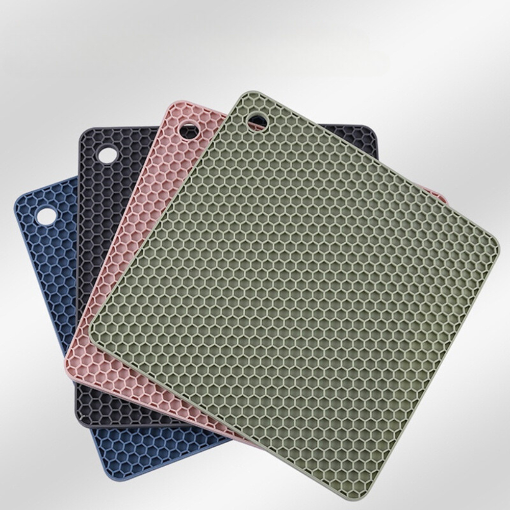 - Thiết kế bám dính – Với thiết kế bề mặt tổ ong giúp tấm lót nồi có độ bám dính cực tốt với mặt bàn và mọi đồ vật được đặt lên.