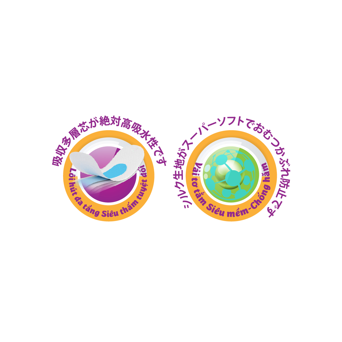 - Lõi hút đa tầng siêu thấm, thấm hút hiệu quả, làm thoáng khí, hút thấm tuyệt đối vùng ẩm trong tã giúp bé luôn khô ráo, không sợ nóng bức, hăm tã gây khó chịu cho bé.