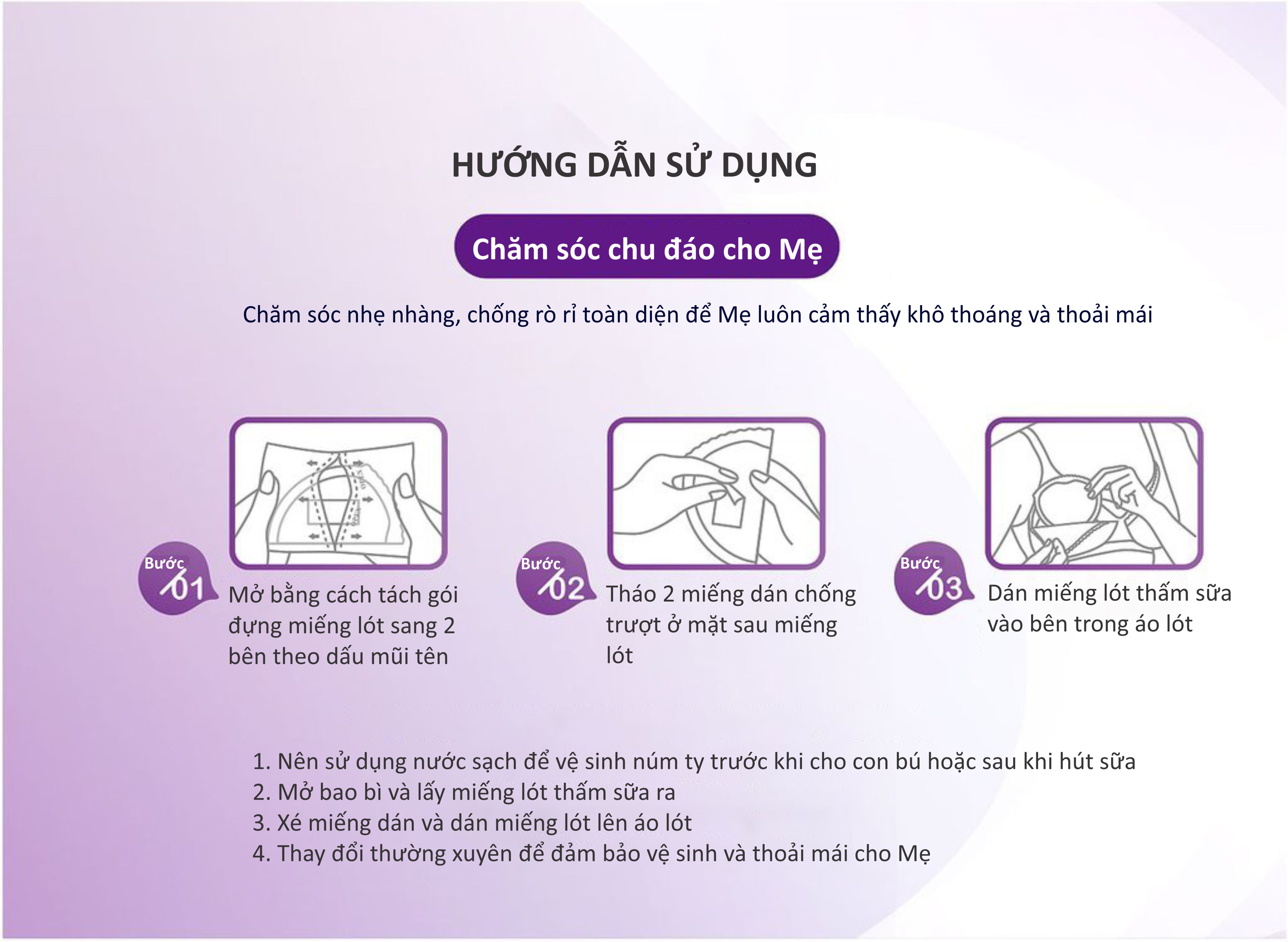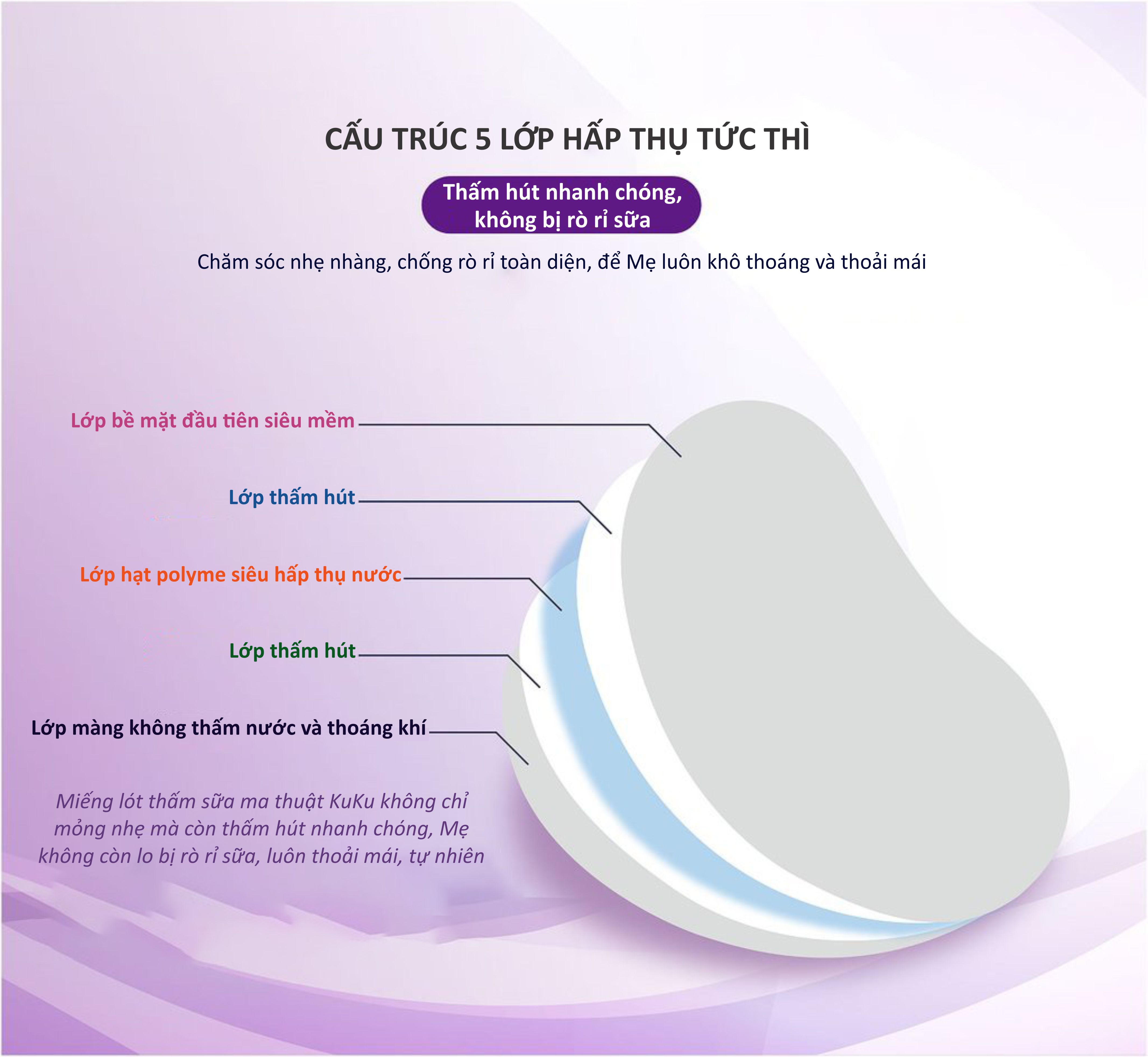 - Thấm hút tức thì lên đến 150ml sữa và chống thấm ngược trở lại; - Siêu mỏng chỉ 0,07cm, liền mạch, ôm sát ; - Co giãn 3 chiều, dễ điều chỉnh để vừa