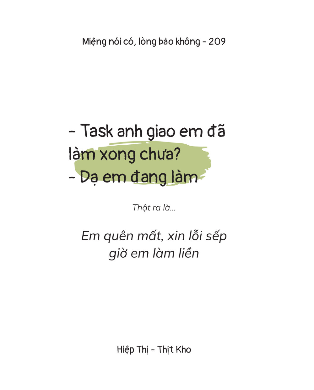 Nếu bạn đang muốn tìm một cuốn sách nhẹ nhàng, mang lại nguồn năng lượng tích cực, vui vẻ để thư giãn sau thời gian làm việc, học tập thì “Miệng nói có, lòng bảo không” chính là cuốn sách mà bạn đang cần.