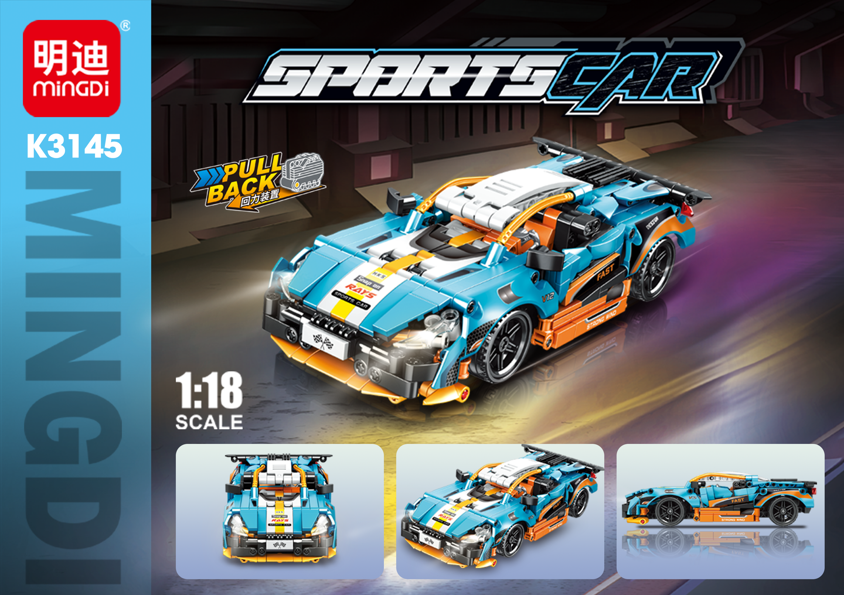 ✨MINGDI - K3145 - Xe Đua Kéo Thả Tỉ Lệ 1:18 (606Chi Tiết)
